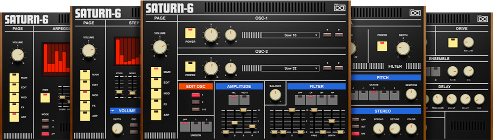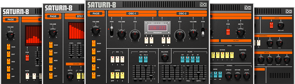 Saturn-6のベースモデルの拡張ラックマウントバージョンとして用意された16オシレーター・8ボイスのスーパー音源モジュールがベースです。フルアナログのVCOとローブースト回路がそのサウンドを象徴づけ、キーボードバージョンにはない魅力と特徴を持ちます。加えその操作性と機動力により現在に至るまで、ツアーからスタジオユースまで、その需要は絶えることがありません。Tangerine Dream、Herbie Hancock、Vangelis、John Carpenter、Talk TalkやMadonnaでそのサウンドを耳にすることができます。我々は他のモデルと同様ハードウェアユニゾンの効果を含め、すべてのサウンドを収録し、格別で刺激的な響きを多くパッケージングしました。