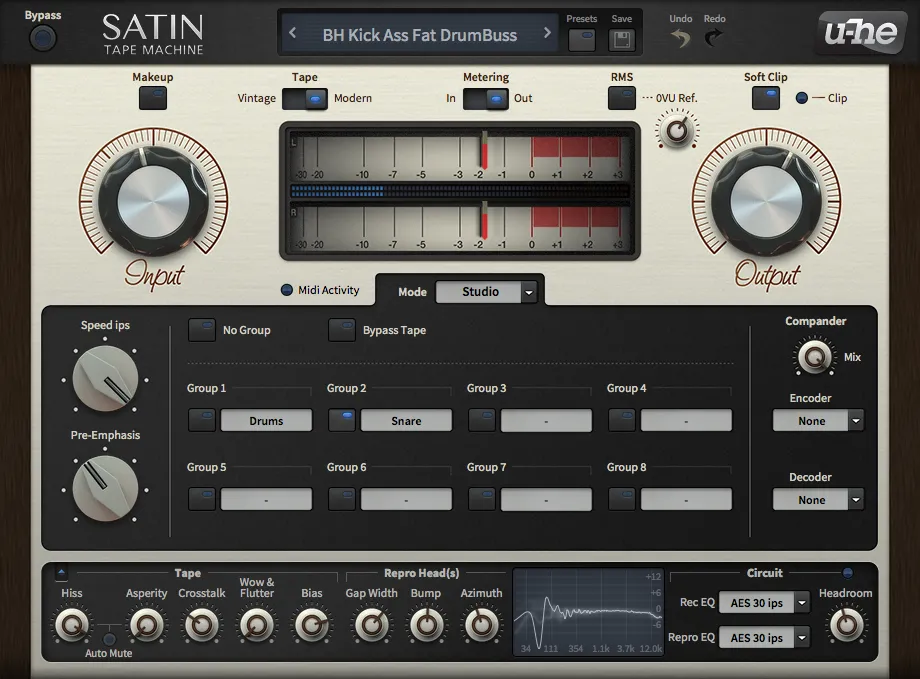 - テープの長所を再現:サチュレーション、スムージング、HFコンプレッション