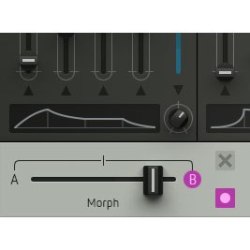 サウンドのモーフィングを可能にするクロスフェーダー。設定したフェーダー値にパラメーターが追従します。