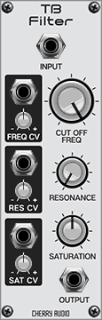 TBフィルターは、世界で最も象徴的なアシッドテクノベースシンセのフィルターセクションを非常に正確にモジュラーで再現したものです。TBフィルターのサチュレーションノブは、微妙なものから曲者なオーバードライブまで作成します。