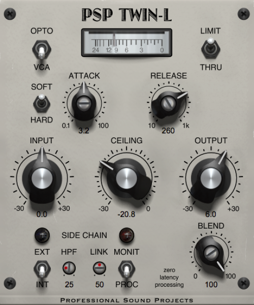 ただし、PSP Twin-Lのリミッターアルゴリズムは、特定のハードウェアをエミュレートするのではなく、両タイプのリミッターの機能を、多目的に使用できるようなプラグインとなることを目的としています。