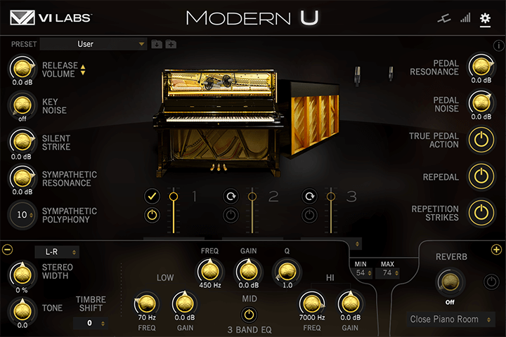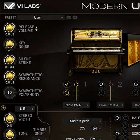 我々はアップライトピアノも大好きです。Modern Uは、VI Labsが提供する最高級のコンサートグランドライブラリーと同じコンセプト、同じ品位で仕上げられています。アップライトピアノは、グランドピアノを使用できない際の妥協と考えれていますが、その固有のキャラクターによって、様々な場面でこれに勝る変え難い響きを提供するのも事実です。