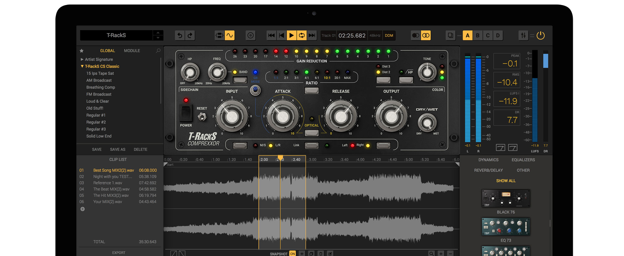 ComprexxorはT-RackSモジュールの一員です。ご購入前に無料で試用することも可能です。ただのコンプレッサーの枠に収まらない、汎用性の高さを実感してください。