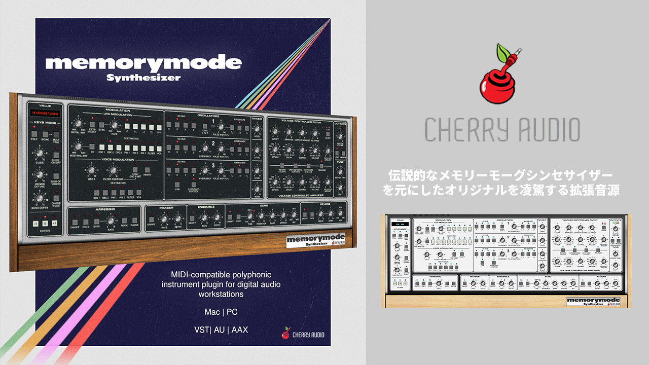 「Memorymode は傑出したシンセで、エレガントで美しく、そしてクラシックです。音色は非常にオーガニックで、とても愛らしく暖かい音がします。GUIは10点満点。すべてのプリセットが信じられないほど素晴らしいサウンドを出します。膨大な数のプリセットをチェックしましたが、リードが一番好きですね。アルペジエイターとエフェクターの配置も最高。モンスターベース用のMODERNボタンも大好きですし、フィルターもとても素晴らしい。間違いなく Cherry Audio の新しいフェイバリットシンセになります」