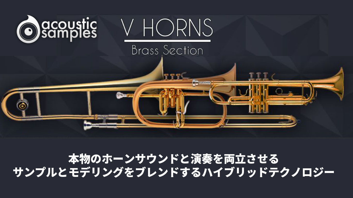 VHornsは、AcousticSamplesの悲願でもあったリアルなソロブラス音源です。その根幹は長年培ってきたサンプリング技術と最新のUVIエンジンに装備されたモデリング処理の融合にあります。すでに鍵盤楽器音源で培われてきた同社のこのハイブリッド技術に、様々な管楽器の音源化に際する問題点を克服したのがV Hornsです。それ故にソロ楽器ながら、アンサンブルの構築も可能で、ユーザーが自由に自分のブラスセクションを構築できる画期的な音源です。