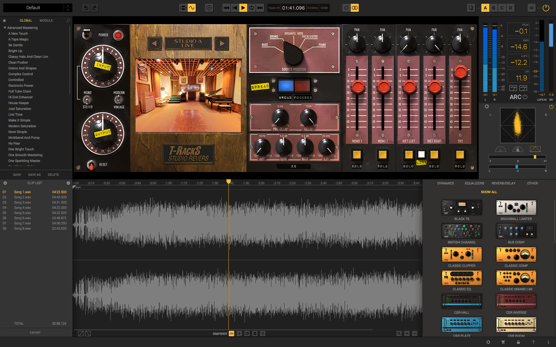 T-RackS FAME Studio Reverbは、AAX、VST2/3、Audio Unitsの単体プラグインとしてだけでなく、T-RackS 5 Suiteの一部としてご利用いただけます。T-RackS 5にはMac/PC版のスタンドアローン・アプリケーションもあり、他のT-RackSプロセッサーと合わせて使用することで、パワフルでスピーディーなミックス、マスタリング・ワークフローを実現します。