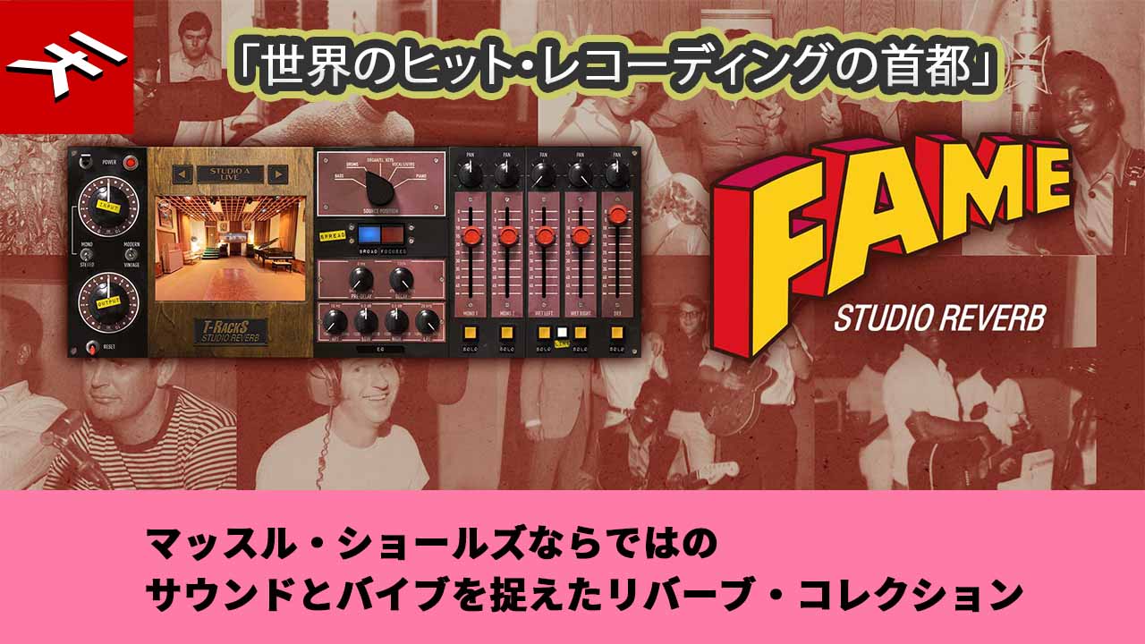 T-RackS FAME Studio Reverbは、「世界のヒット・レコーディングの首都」と呼ばれているアメリカ・アラバマ州マッスル・ショールズにあるフェイム・レコーディング・スタジオの協力を得て、マッスル・ショールズならではのサウンドとバイブを捉えたリバーブ・コレクションです。