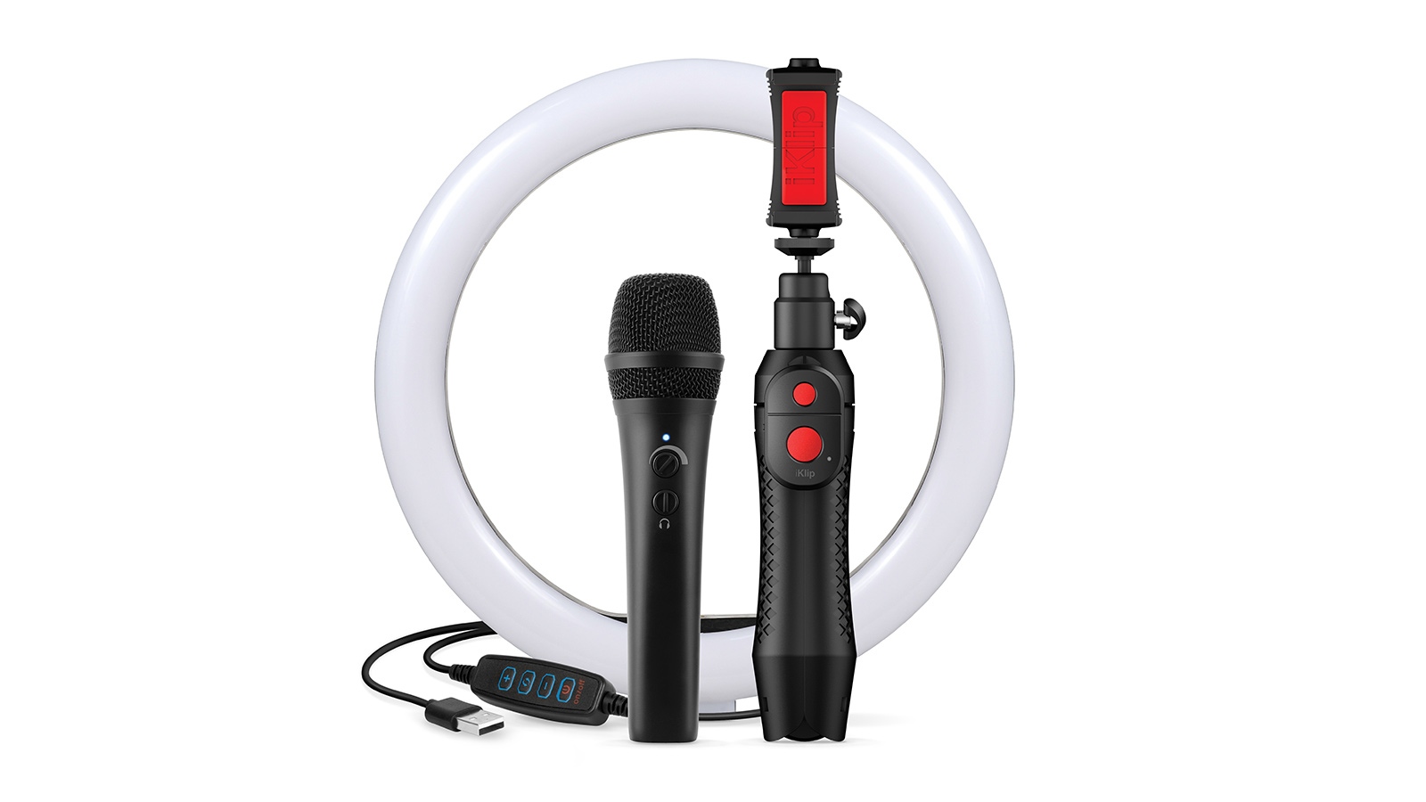 照明は撮影の品質に大きな影響を与えます。そこで iRig Video Creator HD Bundle には、色と明るさを調節可能な 10インチLEDリング・ライト がバンドルされています。最大3600LMの明るさと、3200~5500k の間で調節可能な色温度により、撮影環境においてあらゆるムードを表現できます。