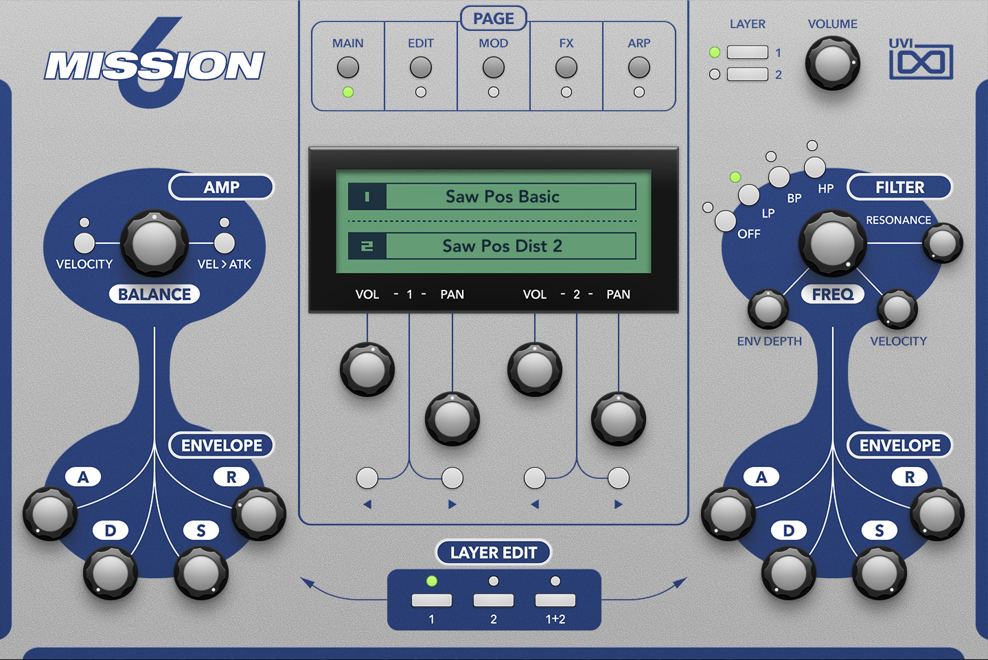Mission 6の美学は、ハードウェアに近いサウンド編集の雰囲気と感触を有しながら、お馴染みのデュアルレイヤー構造によって、実機以上のサウンドデザインを可能にします。オシレーター、エンベロープ、マルチモードフィルター、LFOとステップモジュレーター、デュアルアルペジエーター、EQ、ドライブ、Thorus(コーラス)、アンサンブル、フェーザー、ディレイ、Sparkverb(リバーブ)など、高品位のエフェクトセクションまで、すべてがフルコントロール可能で、洗練された操作画面によって、高度なサウンド効果や奥深い響きも簡単操作で即座に調節できます。