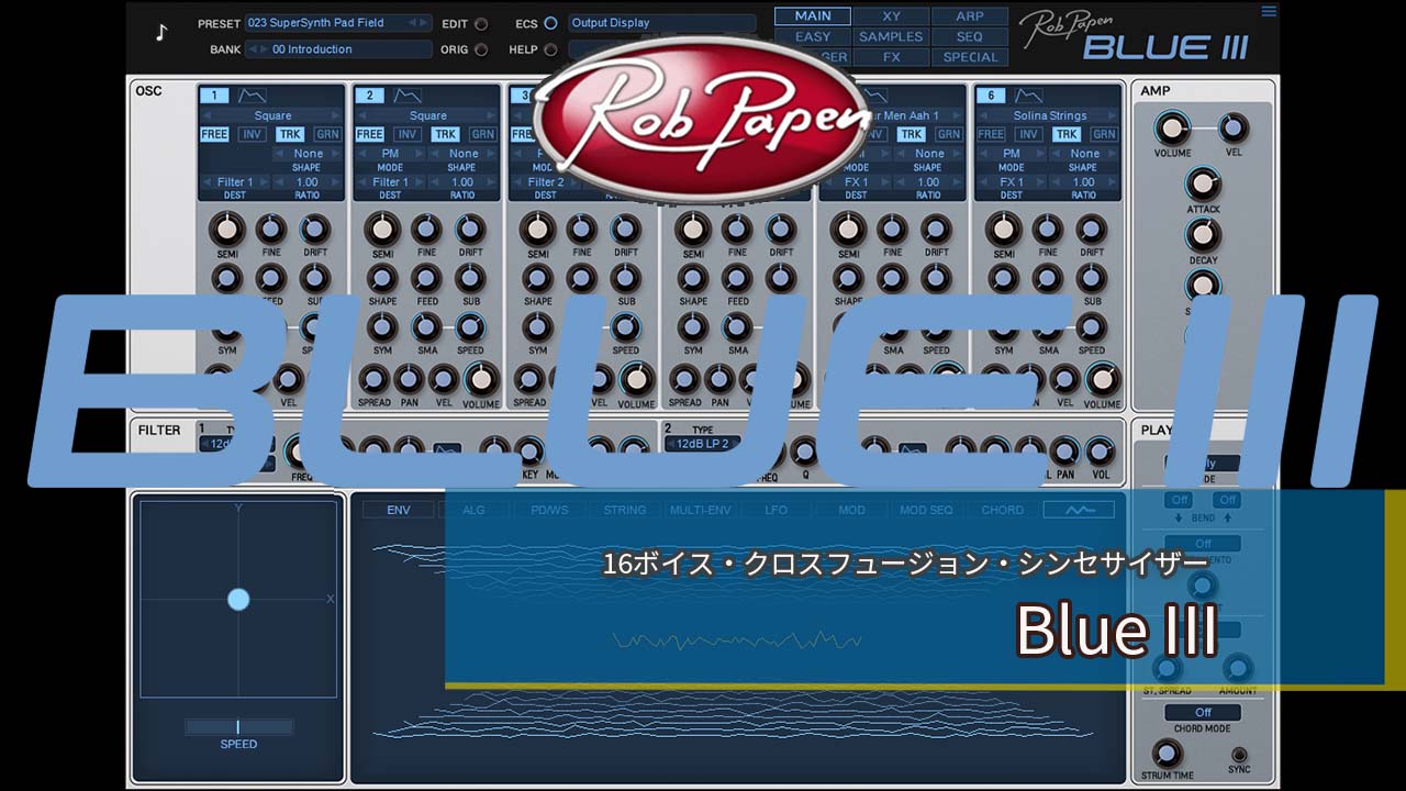 16ボイス・クロスフュージョン・シンセサイザーBlue IIIは、2005年に発表された「Blue」とその後継「Blue II」の特長である、サブトラクティブ・シンセシス(減算合成)とFMシンセシスの両方をカバーする独自の「クロスフュージョン・シンセシス」を踏襲し、更に拡張されたサウンドと機能を搭載したパワフルなバーチャル・シンセサイザーです。「Karplus Strong Stringシンセシス」をはじめ、新しいウェーブフォームやフィルター・タイプ、クリエイティブな内蔵サンプルを追加し、各プリセットには最大6つまでのサンプルをロード可能。オーディオエンジンは、アナログモデリング・シンセサイザー「B.I.T.」のDNAを受け継ぎ、比類ないオーディオ・クオリティを実現。GUIもブラッシュアップし、5,000以上の即戦力プリセットを搭載しています。Blue IIIは、「クロスフュージョン・シンセシス」への道標となる、驚異的にパワフルなバーチャル・インストゥルメントです。