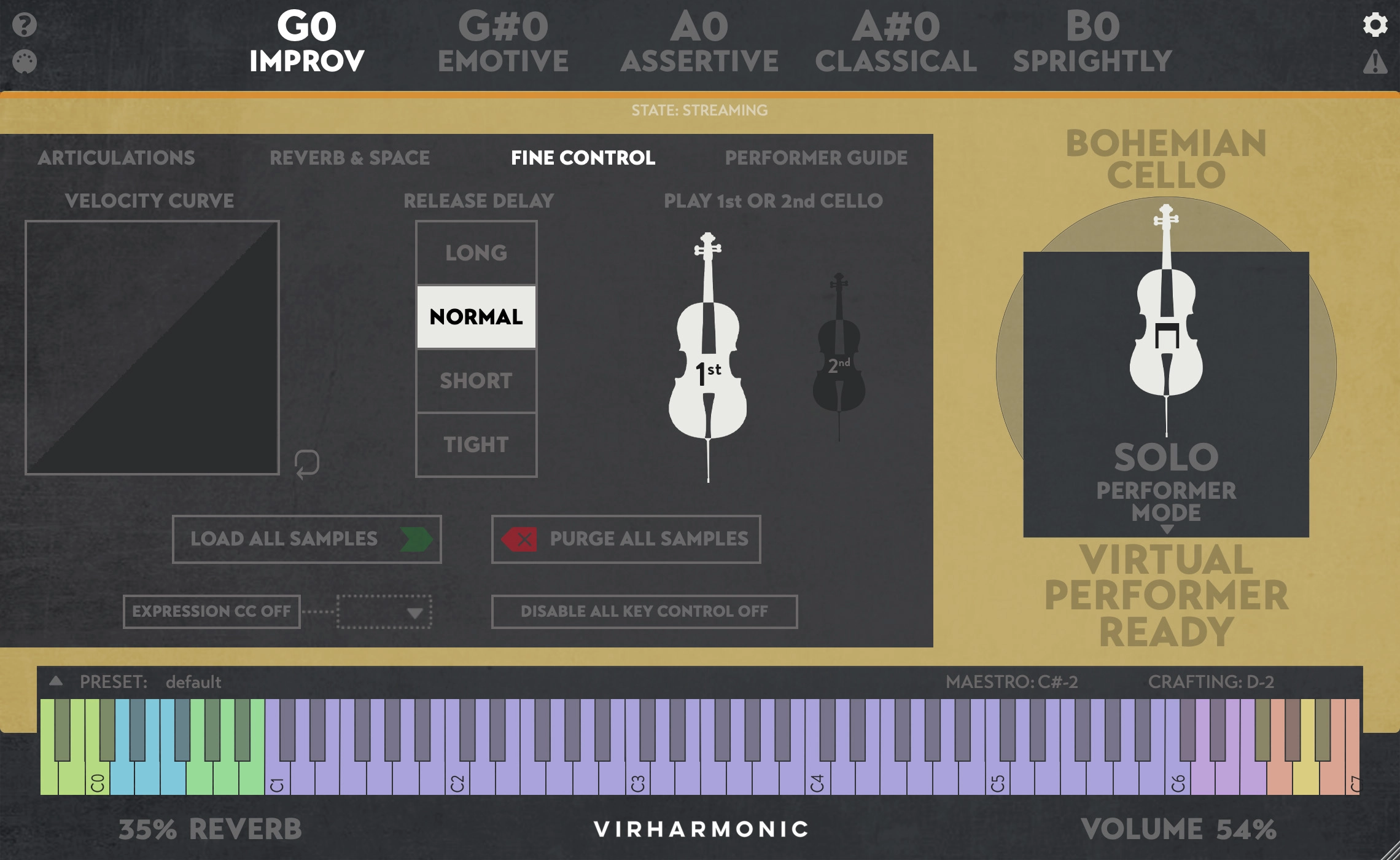そこで登場したのがバーチャルパフォーマーで、多彩なレガート、弓の種類、感情表現などを、ひとつのパッチからリアルタイムにコントロールしながら演奏することができます。