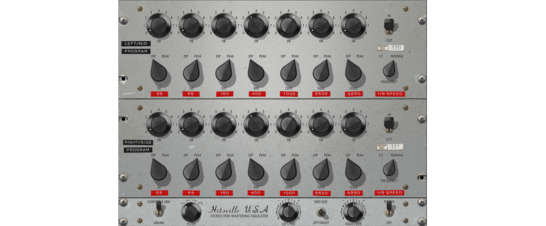 トラックの仕上げに世界で唯一のHitsvilleの超レアなミッド/サイドディスクマスタリングEQのエミュレーションでトラックを仕上げましょう。伝説的な 「Motown Filters 」とハーフスピードの周波数設定があなたの作品にMotownの生産ラインから生まれたばかりの定番シングル曲のようなファットでビンテージなハイファイサウンドとエネルギーを与えてくれるのを聴いて確かめてください。Hitsvilleそのものです。
