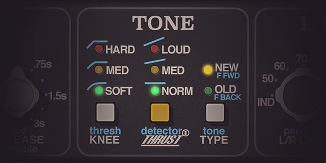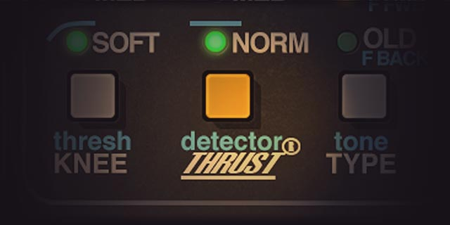 Paragon シリーズのコンソールから採用された API 2500 のスラスト機能は、RMS 検出器の前にフィルターを配置し、高周波エネルギーと低周波エネルギーを均等化します。