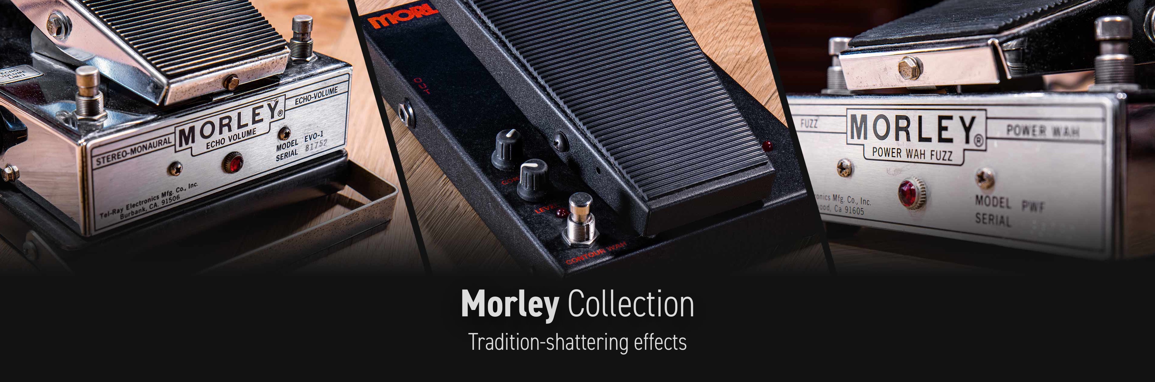 Morley は、レイとマーヴィンのルボウ兄弟が60年代にロサンゼルスで設立したエフェクター製造メーカーです。Morley といえば、ワウ・ペダルが最も有名で、エフェクトのコントロールに光学回路を初めて採用し、より静かでスムーズな操作を可能にしました。また、現在では製造されていないオリジナル(特許デザイン)の「オイル缶ディレイ」を含む、ユニークなエフェクターを製造してきたメーカーです。