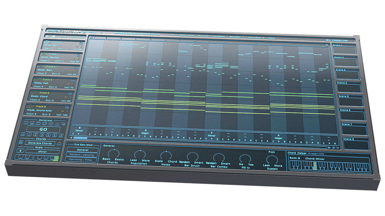 ランダムなノート生成とは異なり、Instacomposer 2 は音楽のアイデアを生み出すために細心の注意を払って作成されたアルゴリズムとデータベースを採用しています。