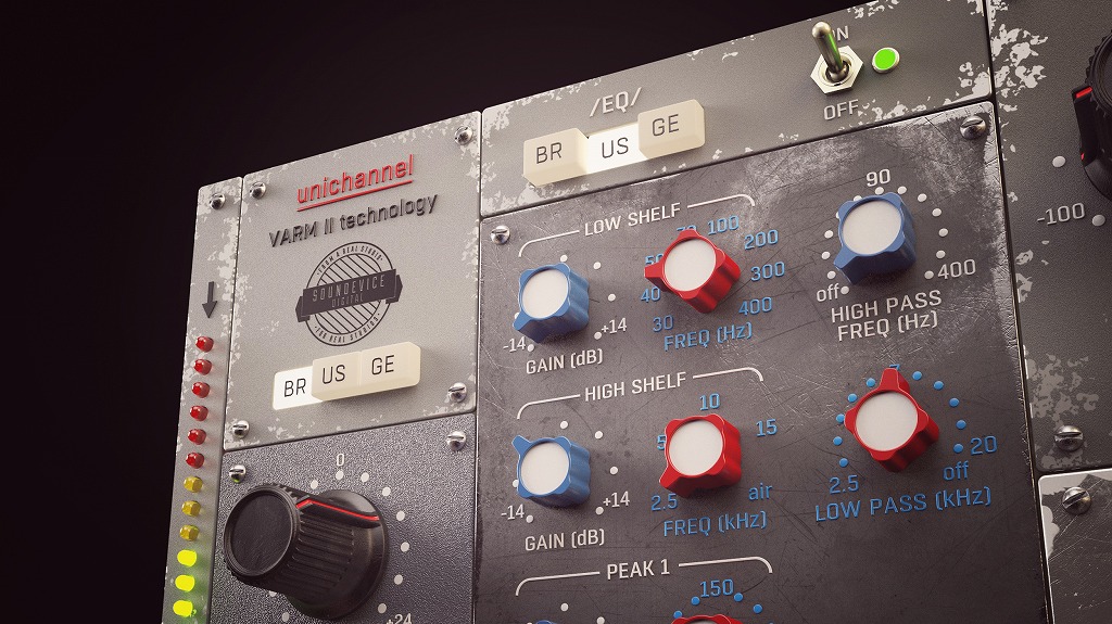UniChannelには3つのプリアンプタイプ、3つのEQ、および3つのコンプレッサータイプが含まれています。