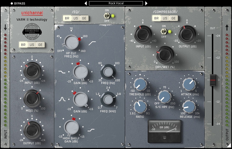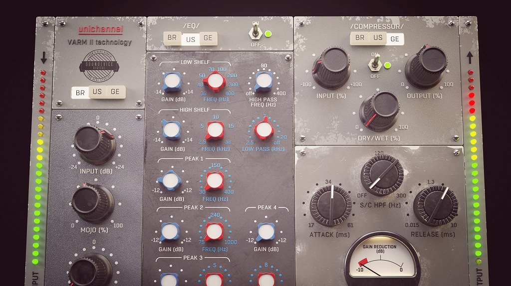 それには70年代のスタイルのトランスフォーマー太いプリアンプ、70年代のスタイルのEQ、および70年代のスタイルのダイオードブリッジコンプレッサーからインスピレーションを得ています。