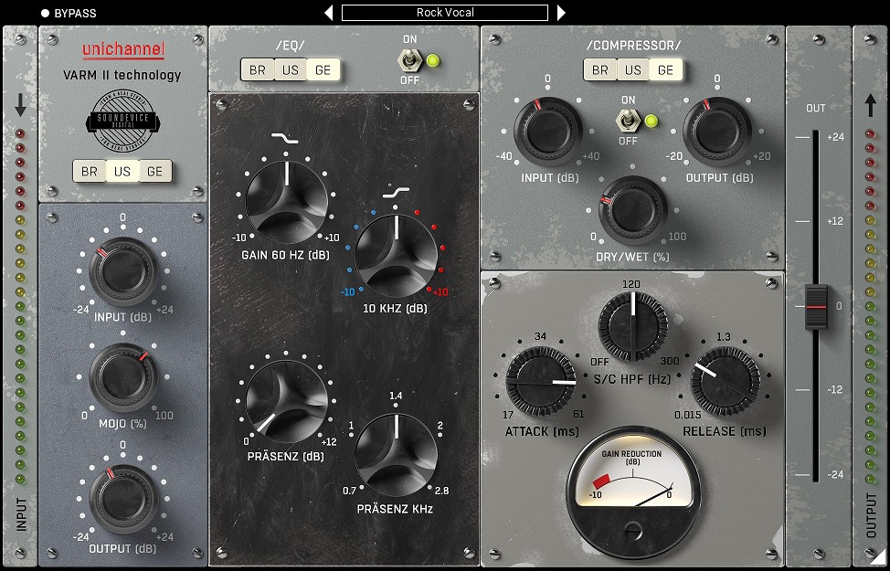 エレクトリックギターやトムに最適な中音域を提供し、アメリカの50年代初頭の真空管コンプレッサーはヴォーカルを豊かにし、驚くほどカラフルにします。