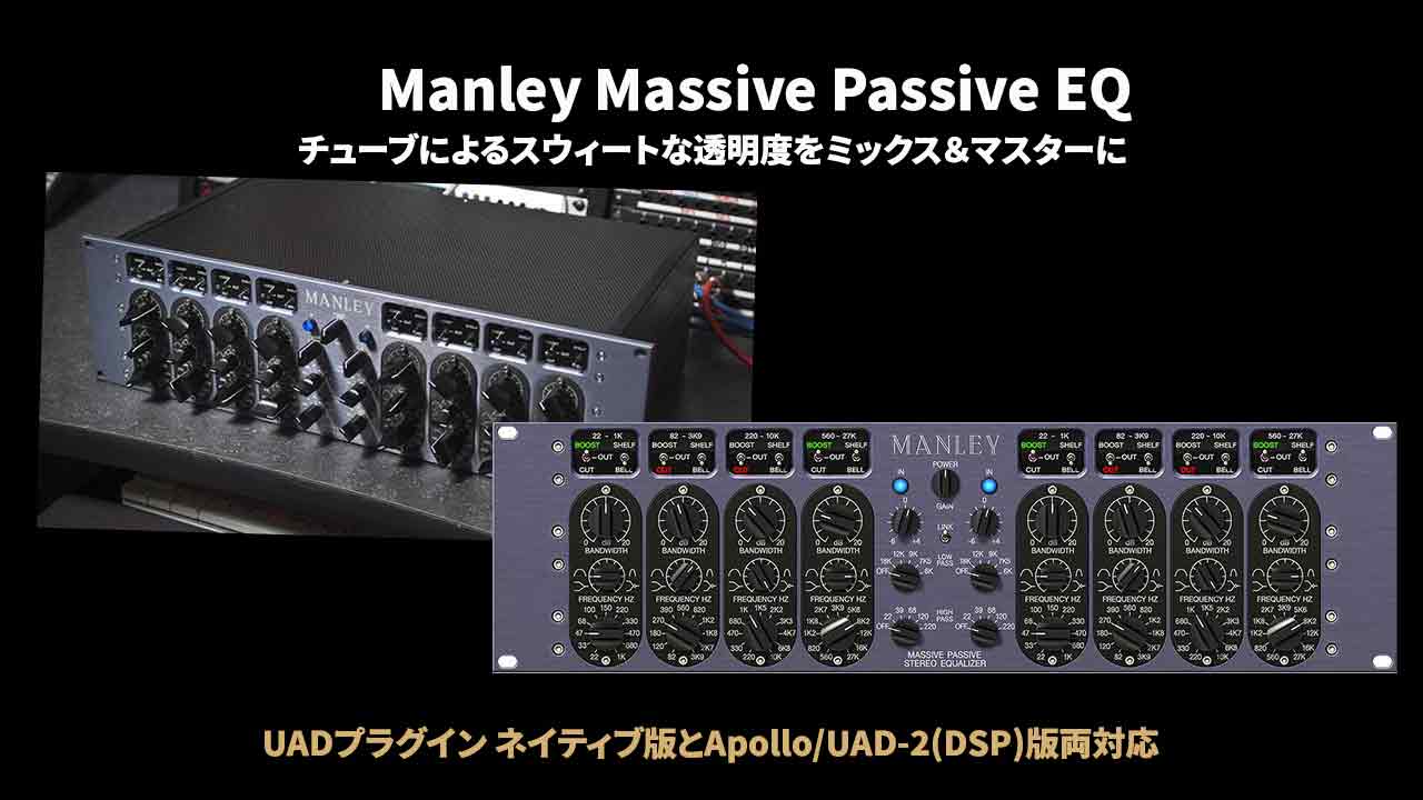Manley Massive Passive EQプラグインには、帯域幅を連続的に調整できるスタンダードバージョンと、16ステップの選択が簡単に呼び出せるマスタリングバージョンの2種類があります。個々の楽器やミックス全体に対して、微妙なストロークや広域のストロークを加えるのに最適で、ドラムやボーカルに耳障りの無いプレゼンスやシズル感を追加、クリアでパンチのあるボトムエンドでミックス全体に重みや重厚さを追加することができます。
