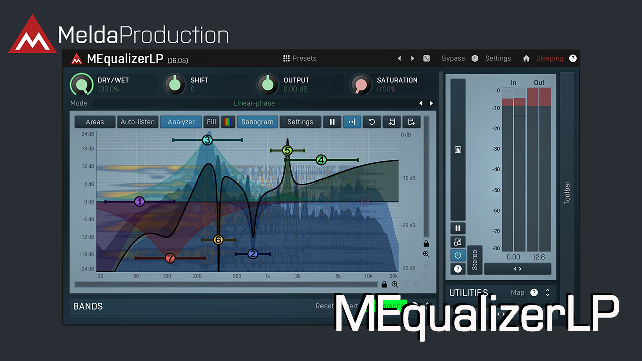 MEqualizerLP は、ユニークな機能を備えたソノグラムと組み合わせた、卓越した多用途のスペクトラム アナライザーを提供します。