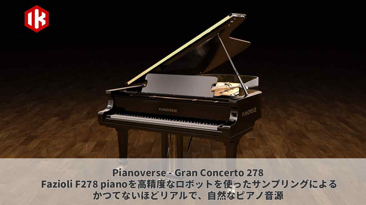 Pianoverseは、最高級のピアノをIK Multimedia独自の高精度なサンプリング・ロボットを使って収録したサンプルを、最新のインストゥルメント・エンジンと組み合わせることで、かつてないほどリアルな音色と、自然な演奏フィールを実現した、新しいピアノ音源です。スタジオ、コンサート・ホールから惑星、氷山などシネマティックなサウンドを生み出す空間ジェネレーターを内蔵しており、ピアノをベースとしたサウンド・デザイン・ツールとしても利用可能です。