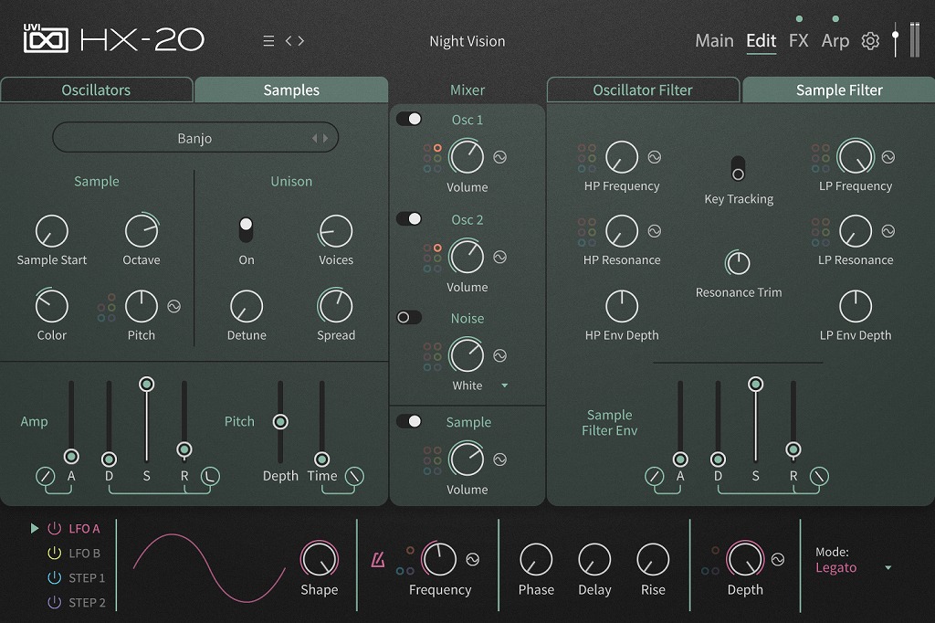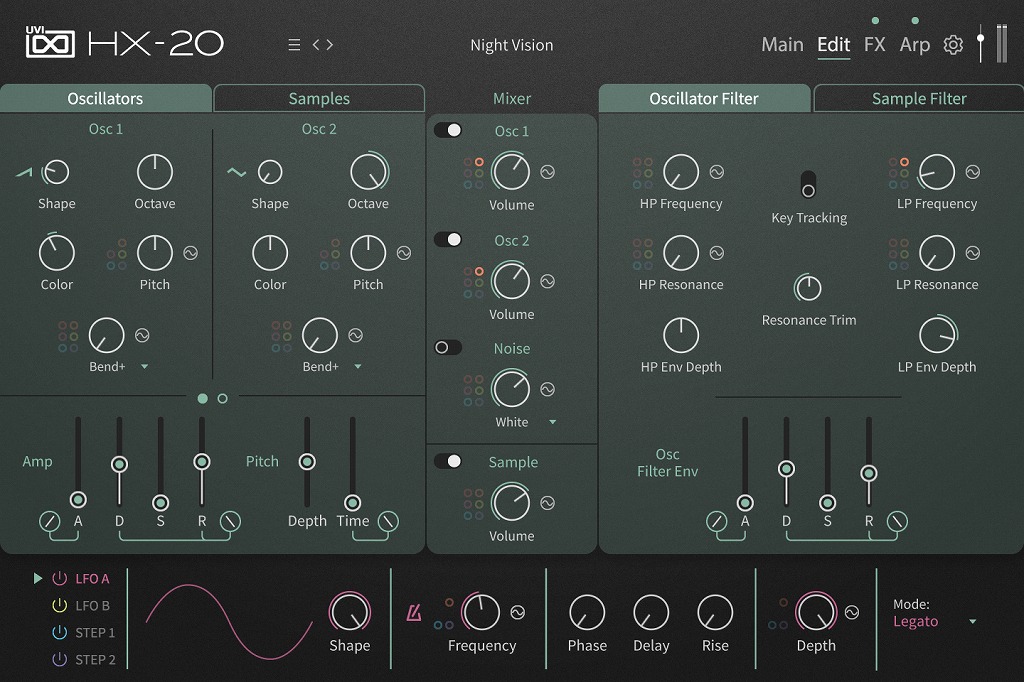 象徴的なアナログモノシンセが、UVIの傑出したハードウェアサンプリングノウハウと洗練されたDSPの魔法を最大限に活かして再構築されたのがHX-20です。