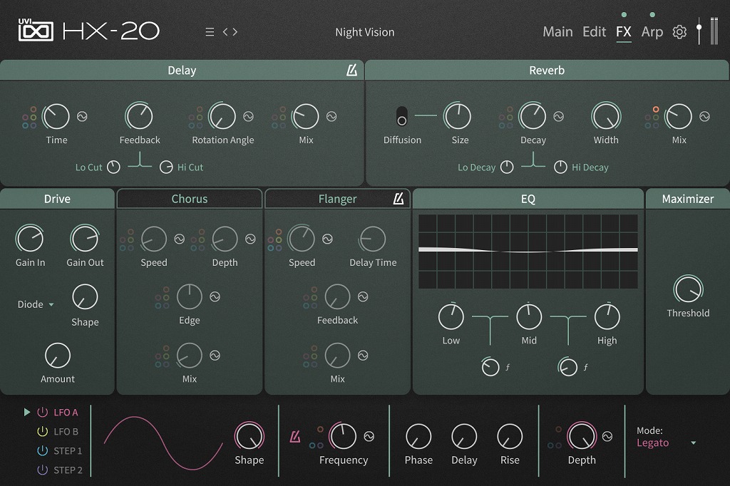 HX-20は、既存プリセットのカスタマイズから、ユーザー独自のパッチ作成をするための強力で多彩なツールセットを提供します。