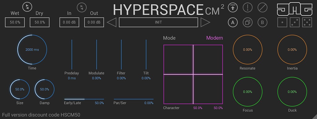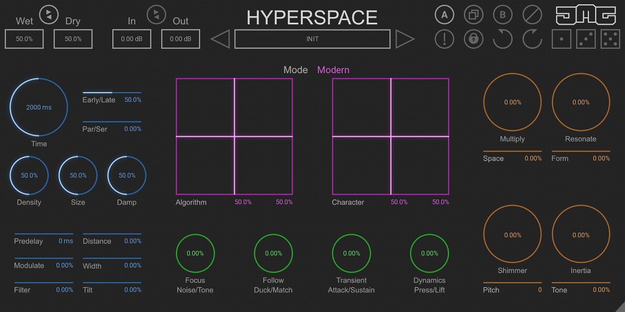Hyperspace は、さまざまなプロセッサで構成されたアルゴリズムを作成できるアルゴリズミックなリバーブです。