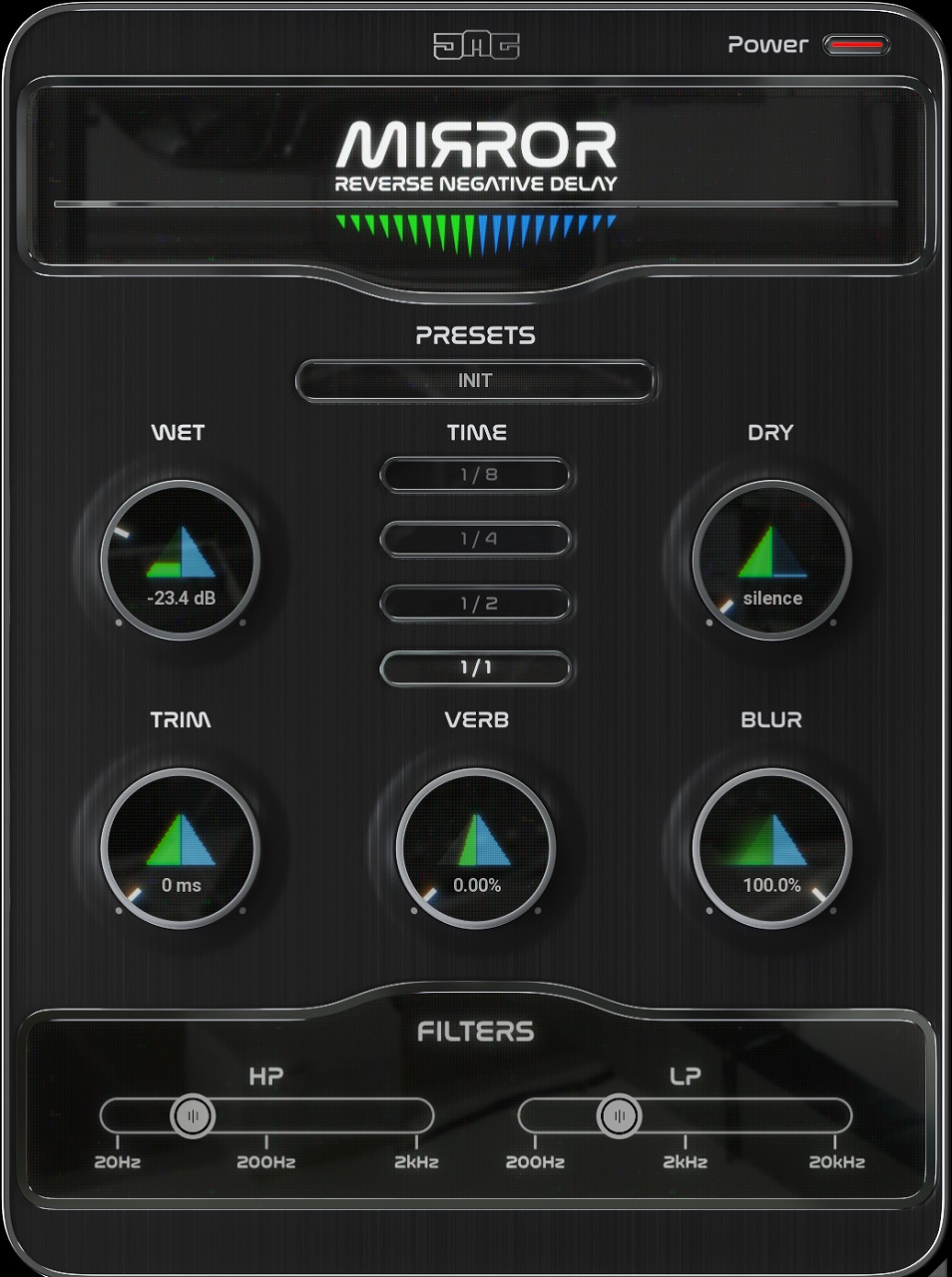 Mirrorはリバース・ネガティブ・ディレイであり、つまりリバース効果が元のサウンドよりも先に聞こえます。