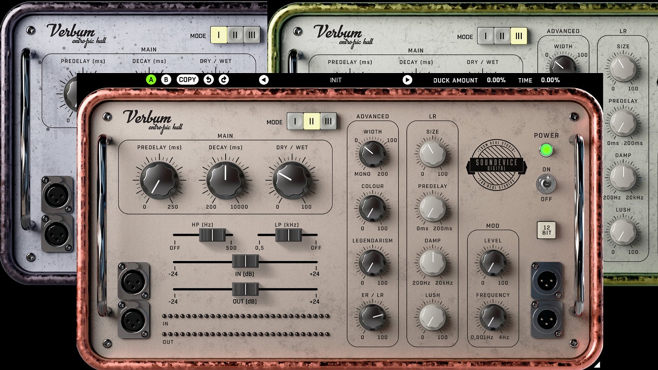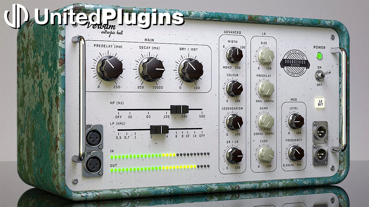 ヴィンテージなリバーブマシンの本物の感触を得るために、Verbumには「12BIT」ボタンが装備されています。