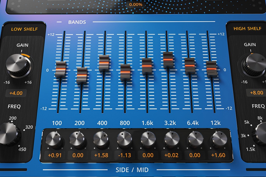 FireEQの8つの中心周波数のそれぞれには、追加のSide/Midノブがあります。