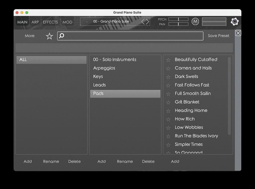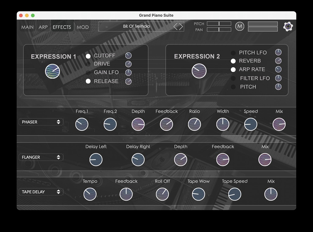 すべてのプラグインにはアルペジエーターとメロディービルダーがあり、実際には再現できないかもしれないサウンドの演奏にする手助けにもなります。