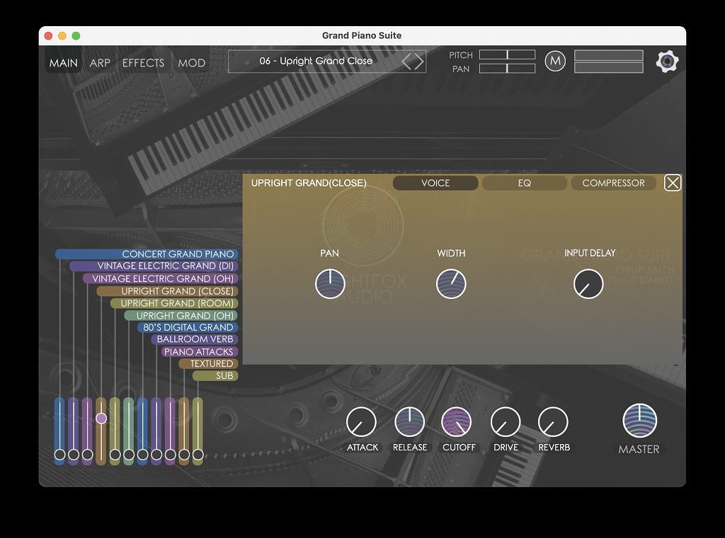 Nightfox Audio プラグインは、最大 12 個のインストゥルメントをスタックして数秒以内にまったく新しいハイブリッド サウンドを作成できるように設計されており、