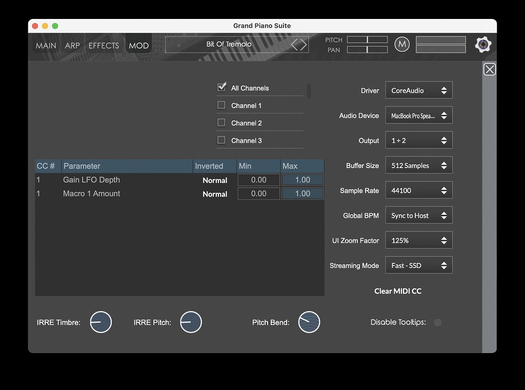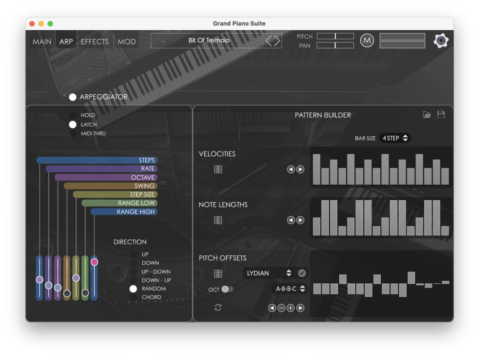 - ホールド、ラッチ、ミディスルーモードを備えた完全にカスタマイズ可能なアルペジエーター