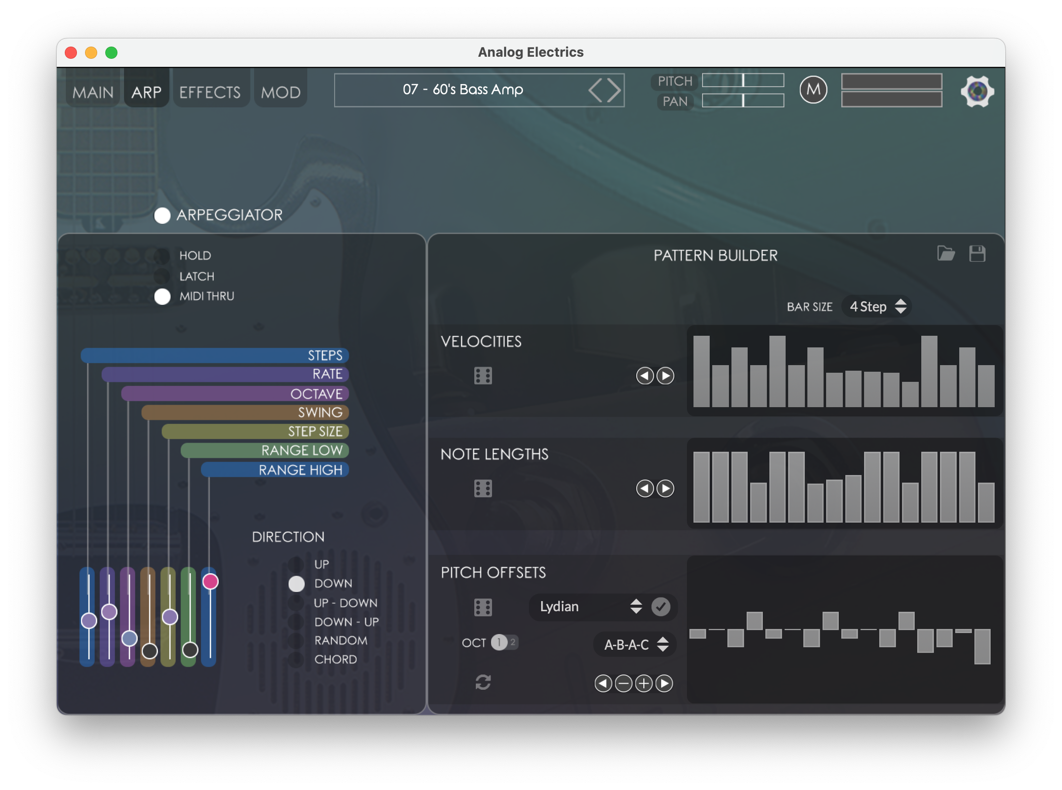 - ホールド、ラッチ、ミディスルーモードを備えた完全にカスタマイズ可能なアルペジエーター