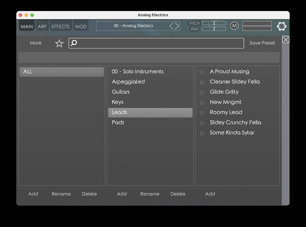 すべてのプラグインにはアルペジエーターとメロディービルダーがあり、実際には再現できないかもしれないサウンドの演奏にする手助けにもなります。