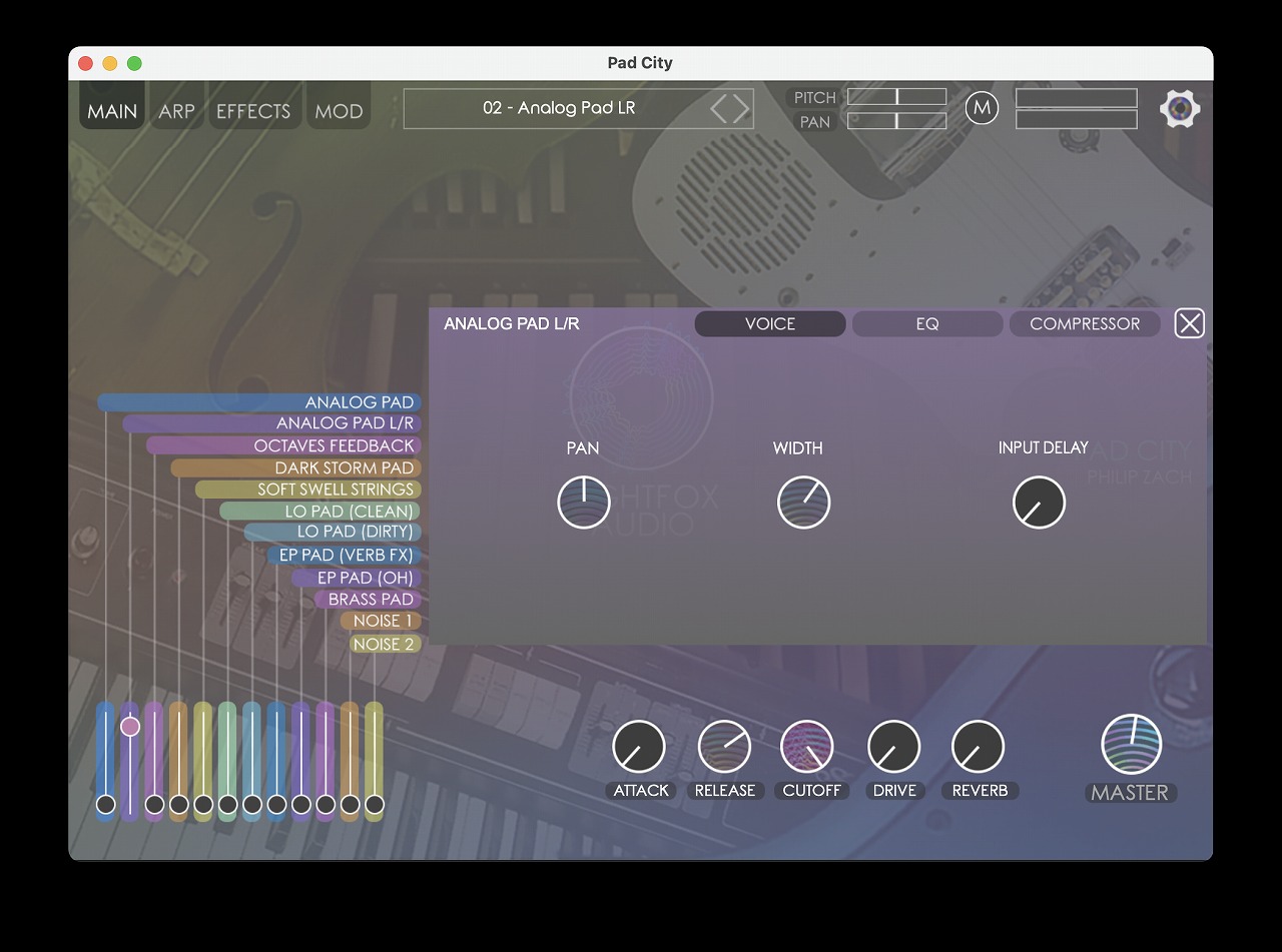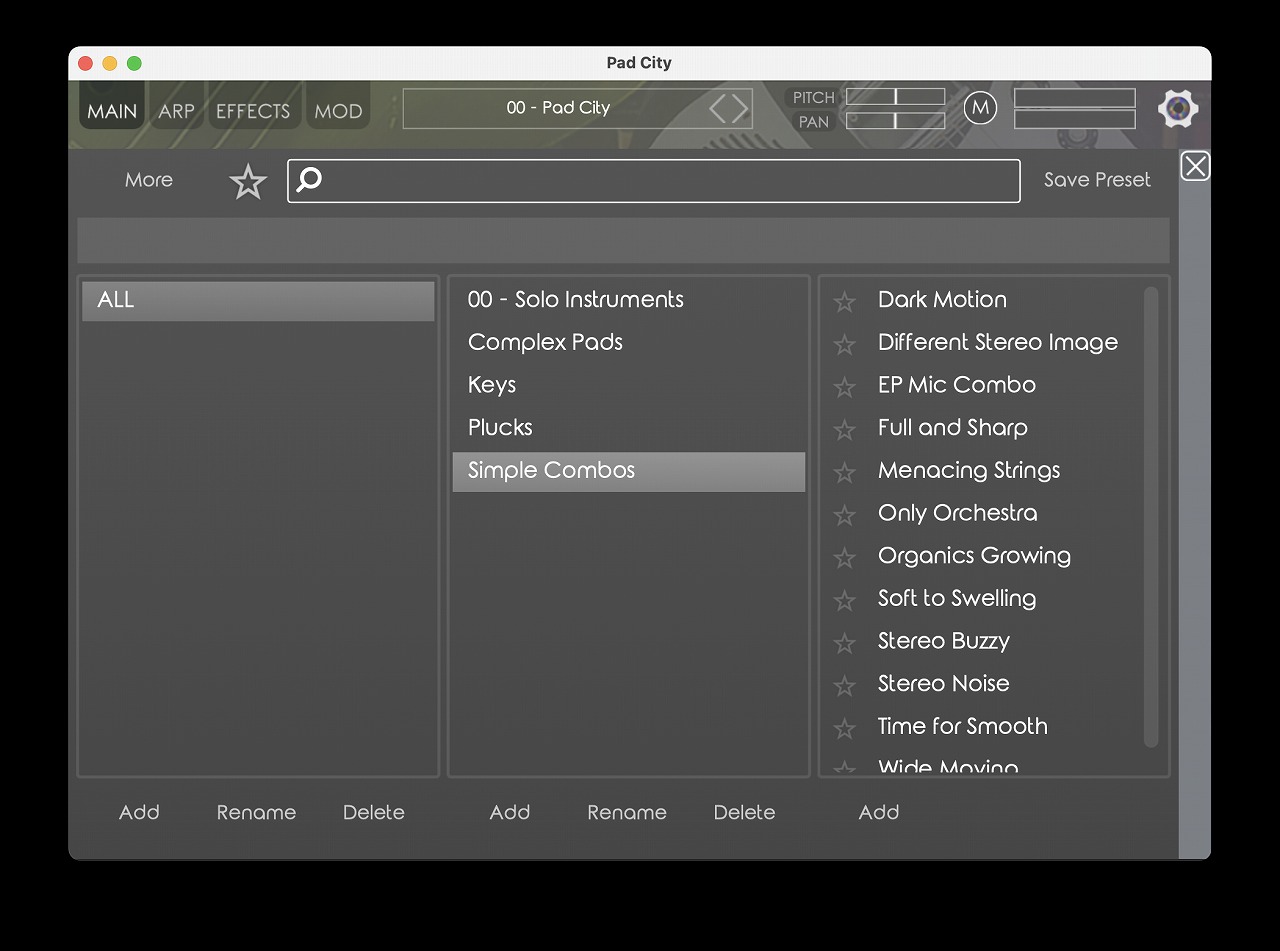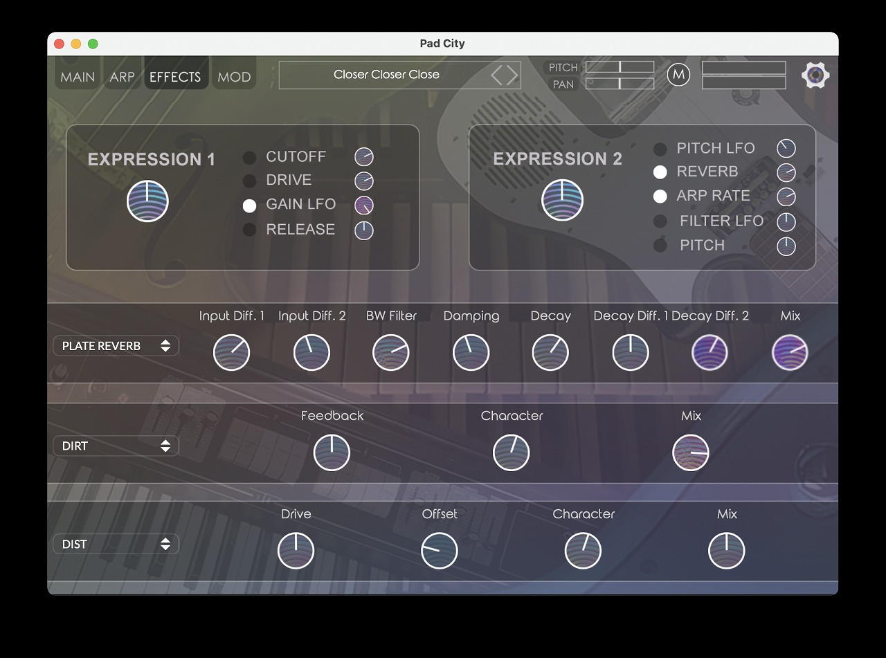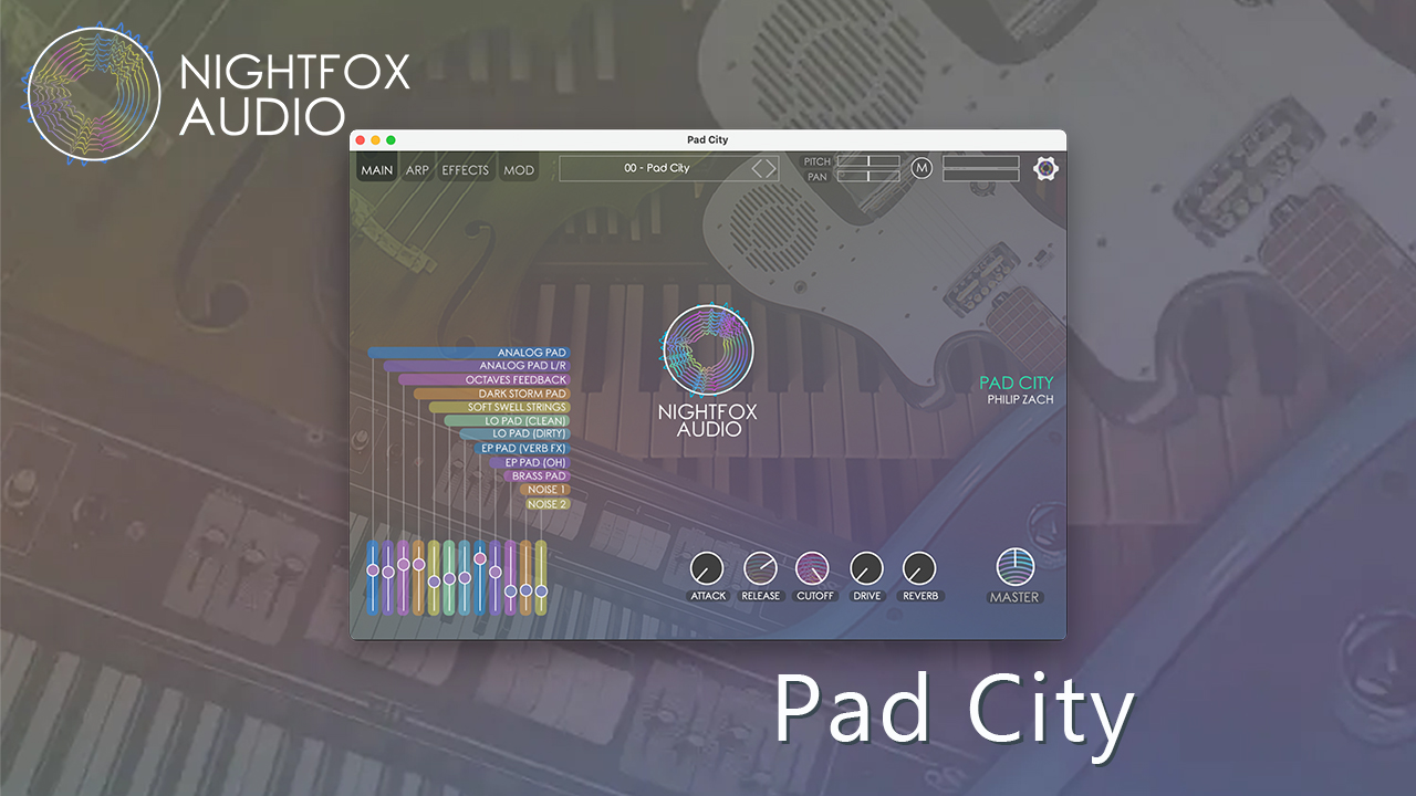 Pad City は、一度に 1 音ずつシンプルに使用してスペースとテクスチャーを追加することも、フルコードで使用してミックスやスコアにスリリングな深みを与えることもできます。