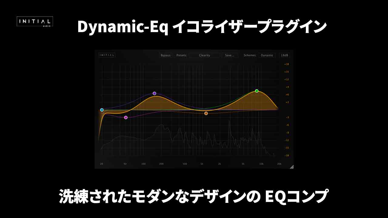 Dynamic Eq は、日常のニーズに合わせた標準イコライザーとして使用でき、より詳細な制御が必要な場合は、クリアなコンプレッサーアルゴリズムを使用して特定の周波数を調整またはブーストすることができます。