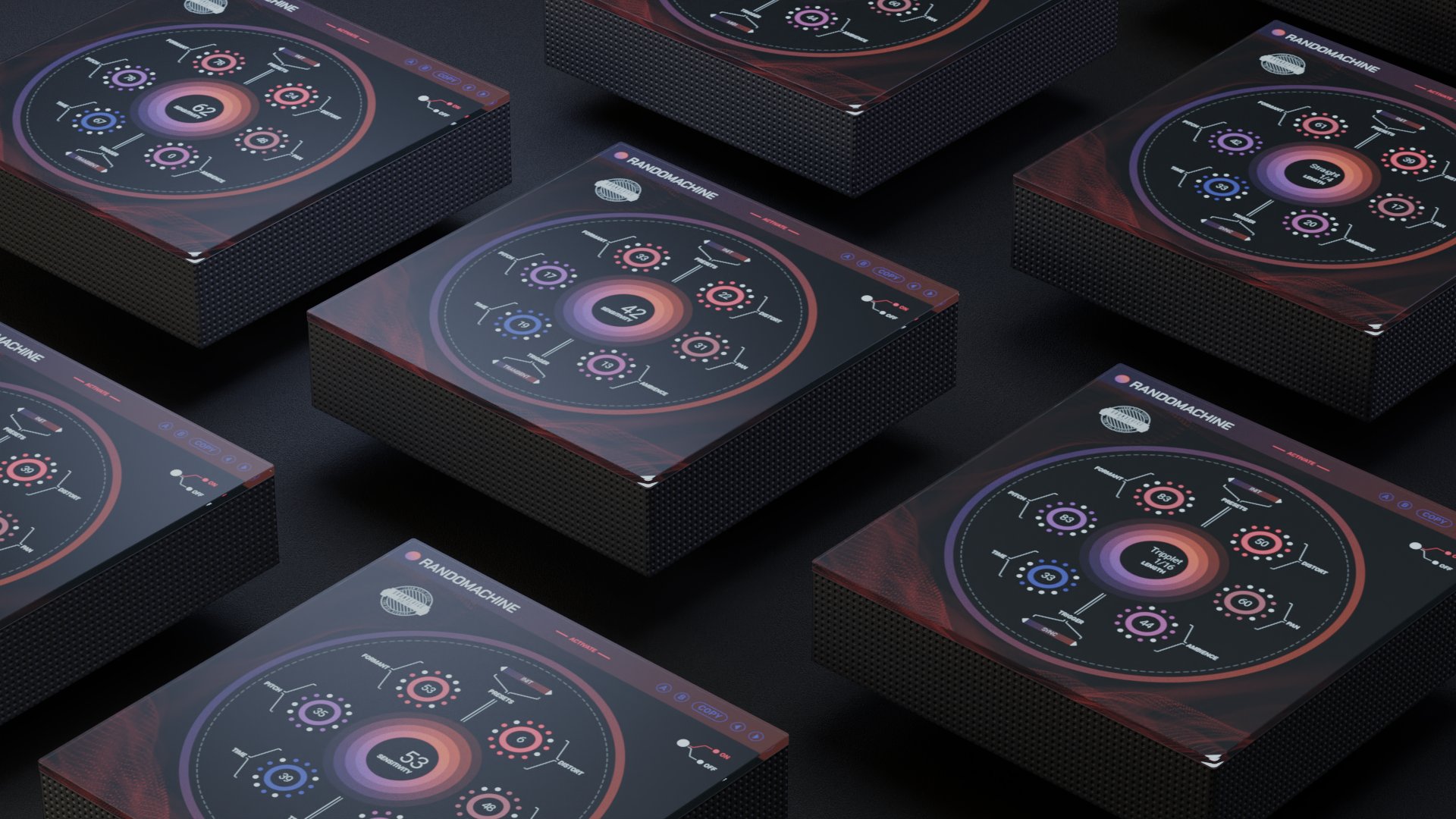 Randomachine がトリガーされるたびに、舞台裏で実行される 6 つのエフェクトそれぞれの複数のパラメーターがランダムに変更されます。
