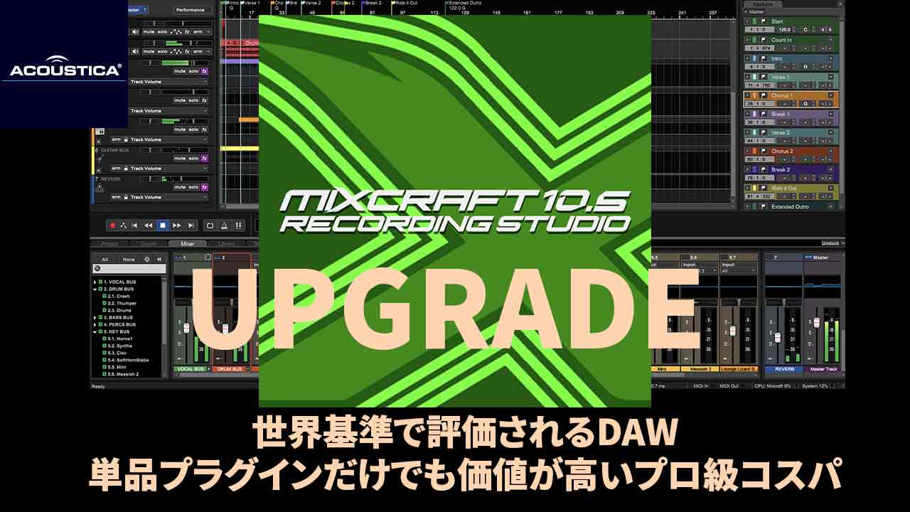 MixcraftはAcousticaのWindows用デジタル・オーディオ・ワークステーション(DAW)ソフトウェアです。2004年の発売以来、プロフェッショナルからビギナーまで幅広く愛用されています。Mixcraftには、エントリーレベルのRecording Studioと、強力なツール、インストゥルメント、エフェクトを追加したPro Studioの2つのバージョンがあります。