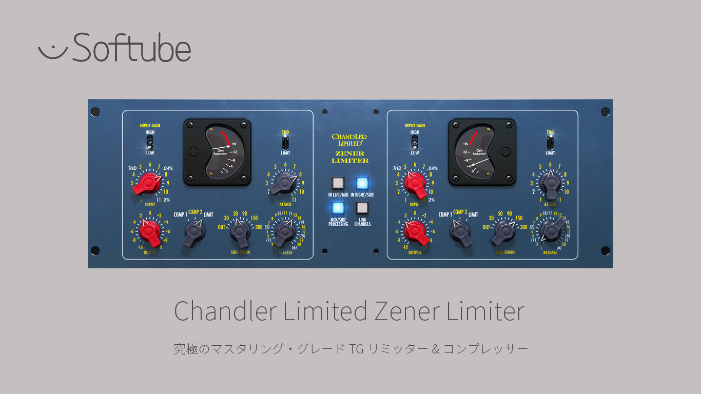 Chandler Limitedとのコラボレーションにより実現したZener Limiterプラグインは、輝かしいイギリスの伝統的サウンドをルーツにしつつ、ツェナー・ダイオードによる多彩なマスタリング・グレードのリミッティングおよびコンプレッションをDAWへ提供します。