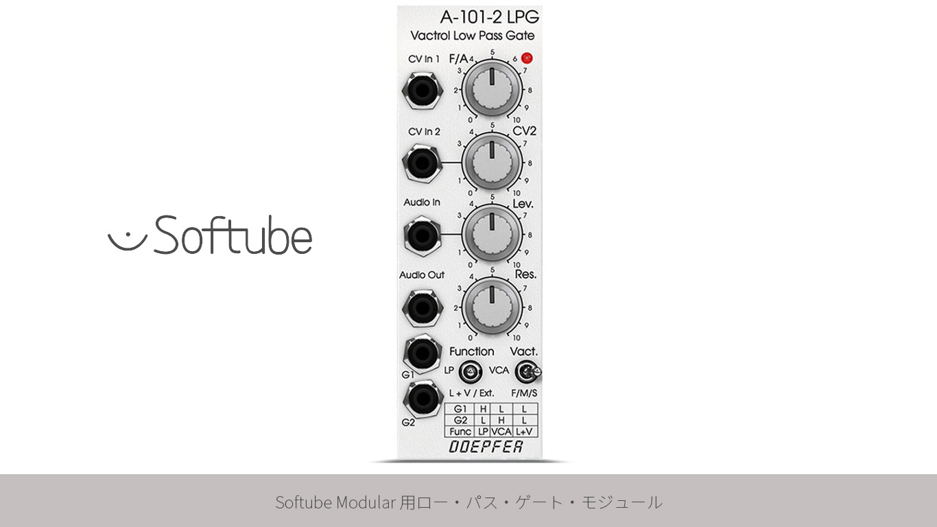 Doepfer Musikelektronik社公認のDoepfer A-101-2 Vactrol LPGは、Softube Modularパッチにこうした機能以上の可能性をもたらします。