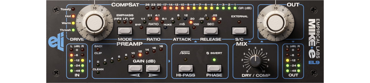 全てが完璧にレイアウトされており、使い方は極めてシンプル。全てがあるべき場所に収まっています。Empirical Labs Mike-Eのルックスだけでなく、楽しく使用するためのレイアウトや意図までもが忠実にモデリングされているのです。
