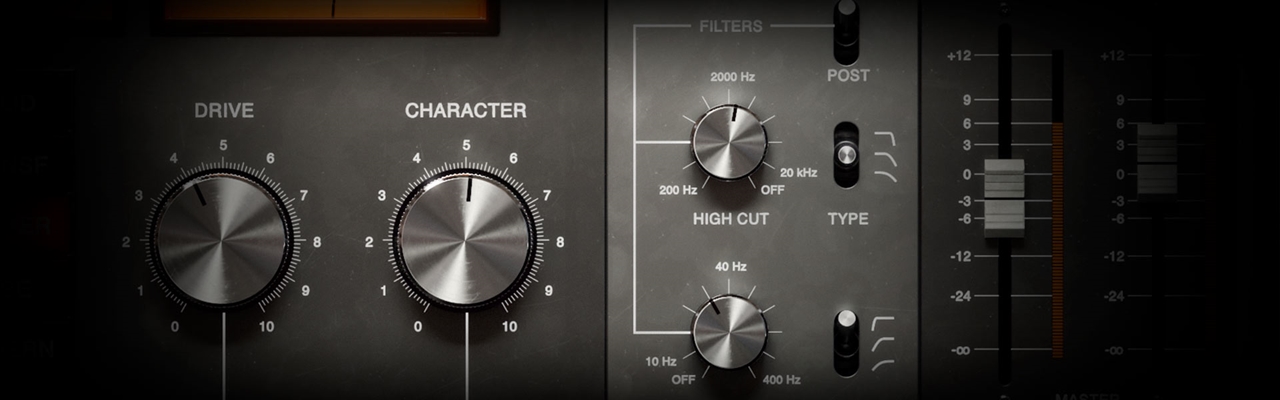 - ディストーションのトーンやカラーを調整する「Character」ノブ
