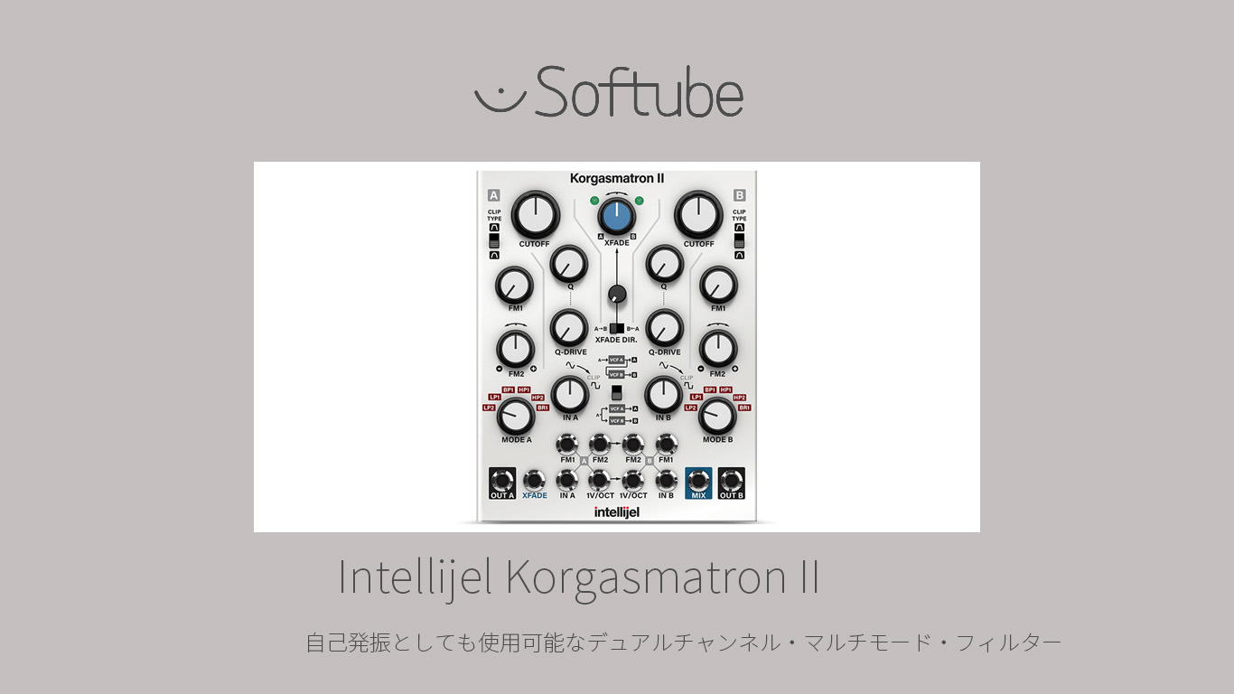 カナダを拠点とするEurorackモジュラー・メーカーIntellijel Designs社との緊密な連携の元で開発され、Softubeのモジュラー・プラットフォームModularのアドオンであるIntellijel Korgasmatron IIは、自己発振としても使用可能なデュアルチャンネル・マルチモード・フィルター。