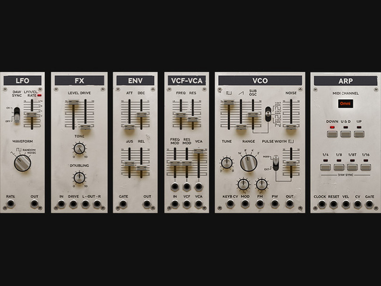 Model 82は、Softubeのモジュラー・プラットフォームであるModular用モジュールを5種(VCF-VCA、LFO、VCO、ENV、FX)収録!このテクノ・シンセをEurorackシステムに追加できるようになったのです。モジュラー・シンセとして個々のコンポーネントを組み合わせて複数のパッチ作成(あるいは1つの大規模なシンセ・パッチ)や、テクノ・ミュージックを定義付けた本格的なサウンドを作り出せます。これらは、ハードウェアでもソフトウェアでも不可能だったことであり、新たな創造性とインスピレーションを与えます。