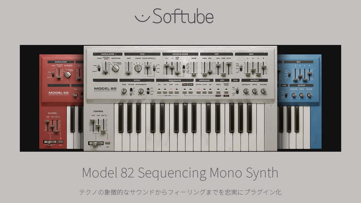 Model 82 Sequencing Mono Synthは、リード/ベースとシーケンサー/アルペジエーターによるテクノの象徴的なサウンドからフィーリングまでを忠実にプラグイン化。