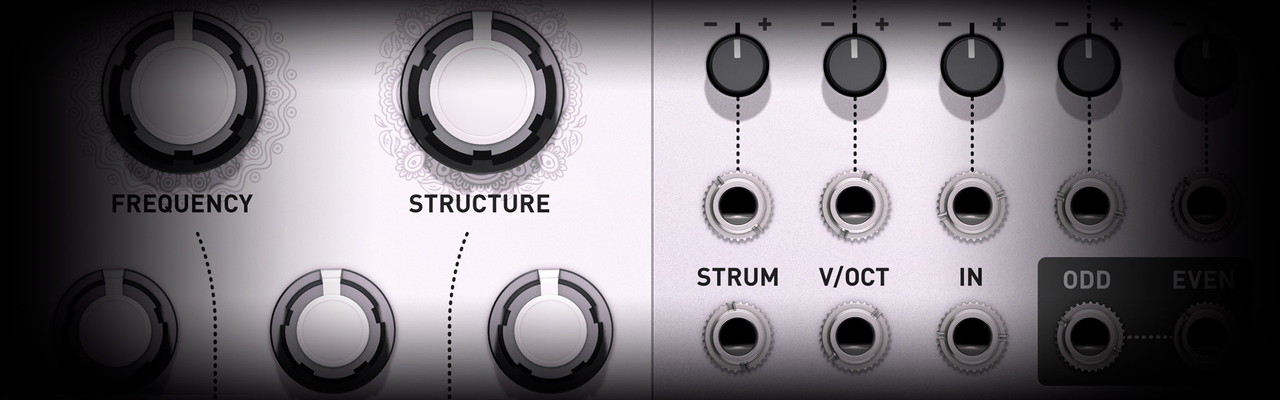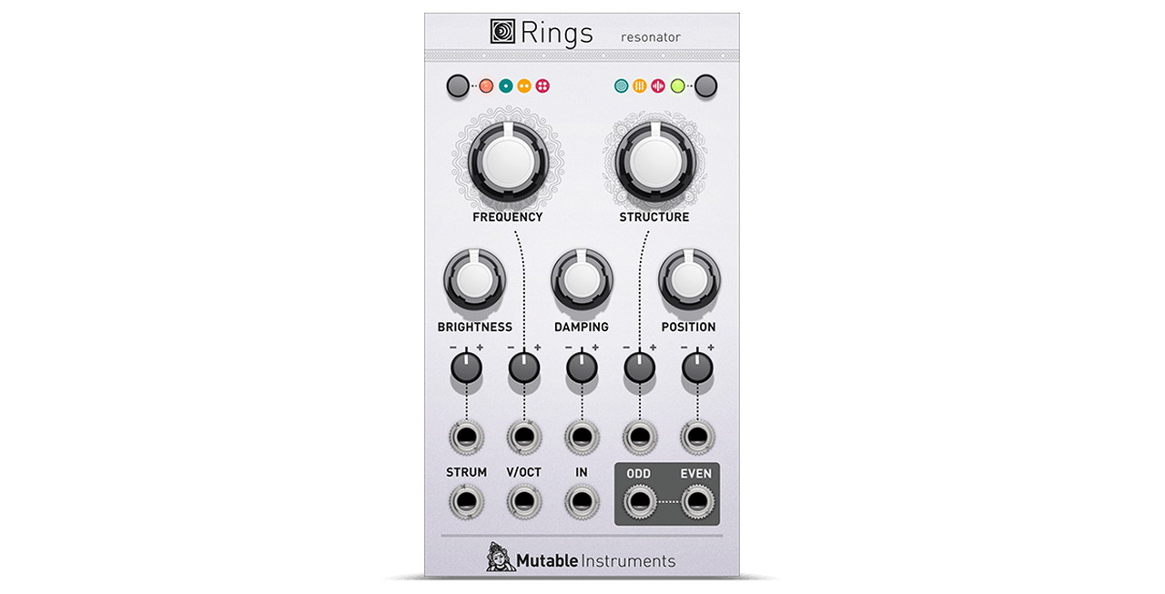 何らかのエネルギー入力(打つ、こする、吹く等)によって物質に刺激を与えるとノイズが発生し、物質(ウッド、メタル、ガラス、ドラム、トランペット等)の共鳴の性質と刺激を与える方法によって、音の性質、音色、周波数、音の長さが決まります。この刺激と共鳴によるスリリングな世界をテーマにしたのが、フランスでのEurorackパイオニアMutable Instruments社のRingsモジュール。