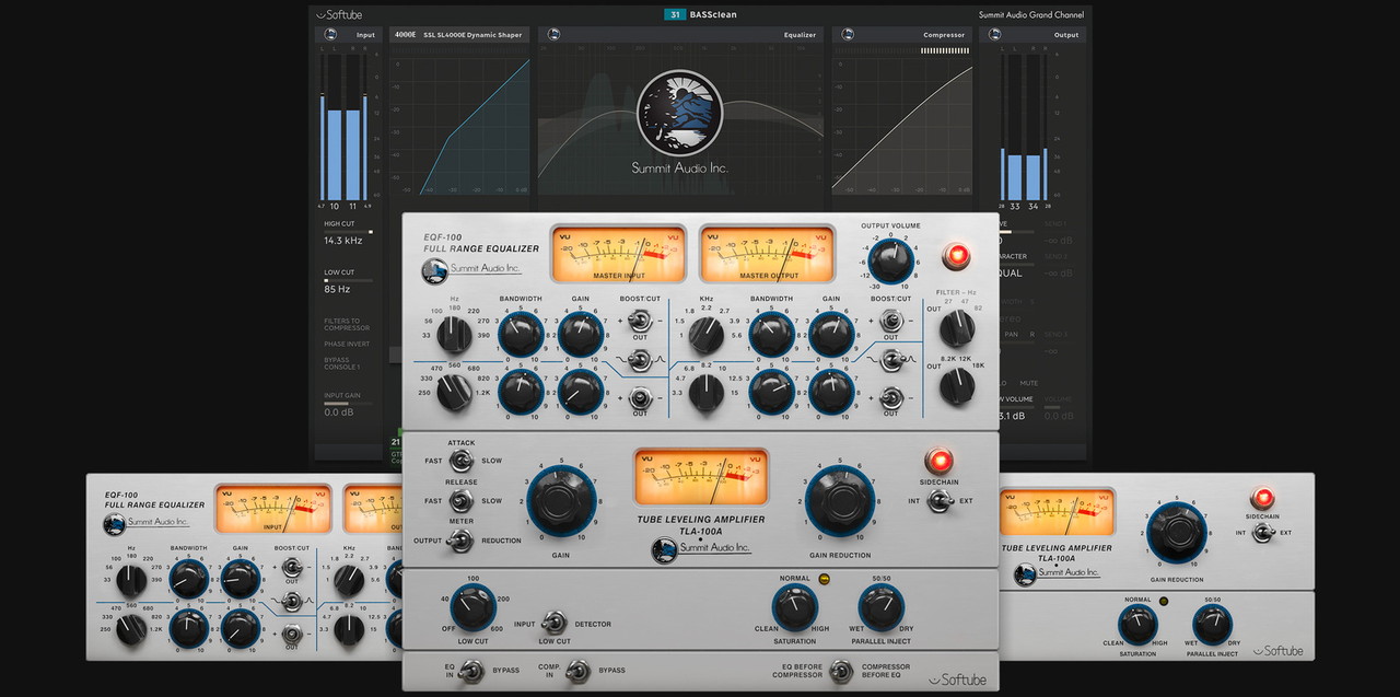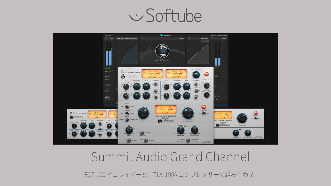 Summit Audio Grand Channelは、温かくスムーズなトーン形成のできるSummit Audio EQF-100フルレンジ・イコライザーと、サウンドが豊かで非常に使いやすいSummit Audio TLA-100Aコンプレッサーの組み合わせです。