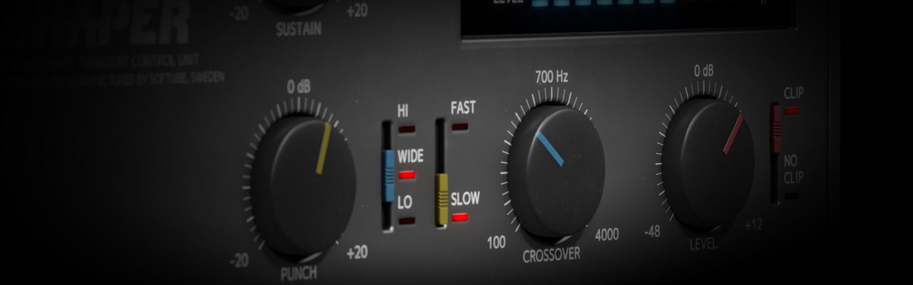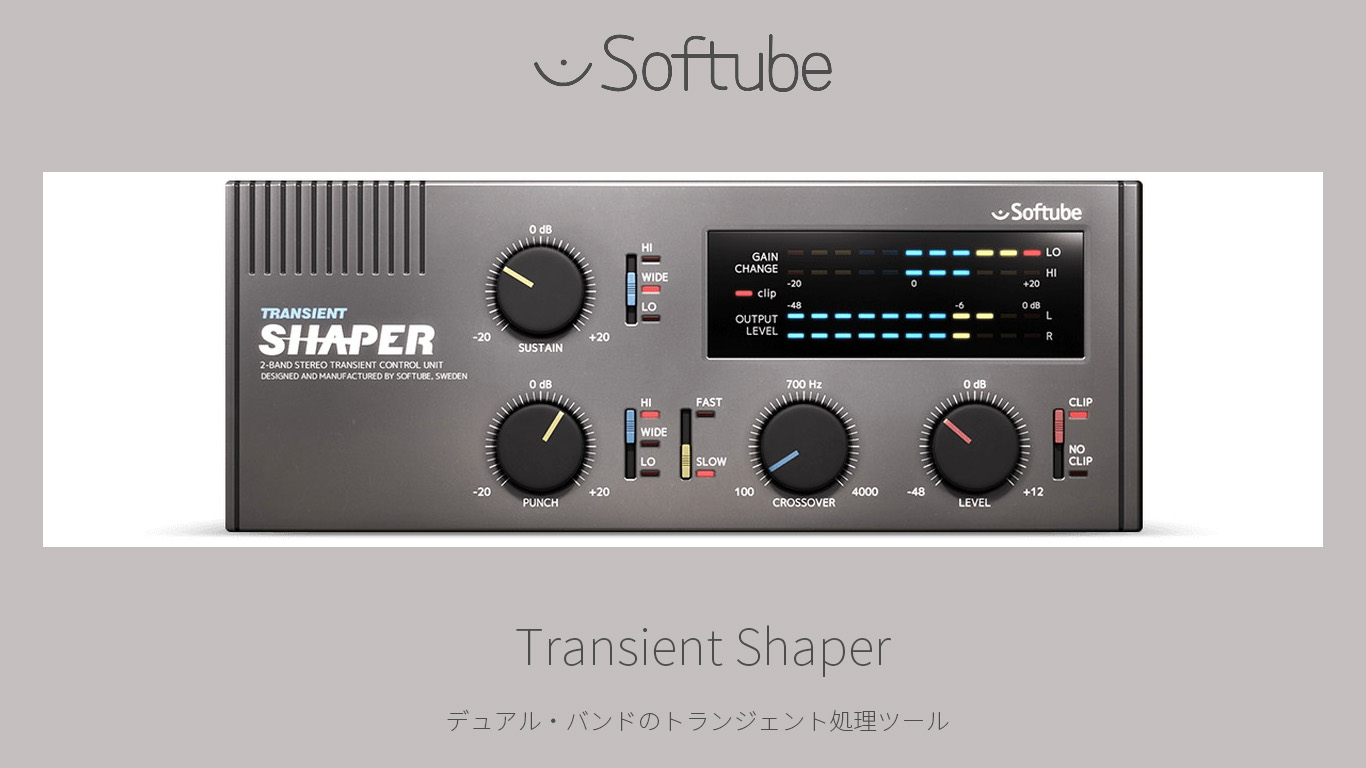 ミキシングにおいてトランジェント・シェイピングは極めて重要なテクノロジーですが、SoftubeのTransient Shaperは一歩先を行き、デュアル・バンド・プロセッサーを採用することでサウンドのトレブルまたはベース部分のみに作用するようサスティン・パラメーターとパンチ・パラメーターを別に設定し、残りには手を加えないようにすることができます。